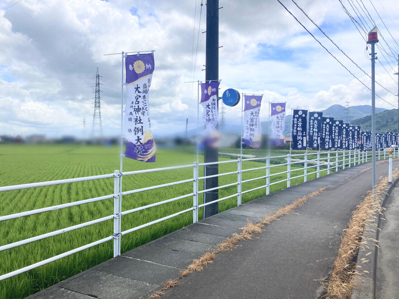 近くの道路には旗も出てて