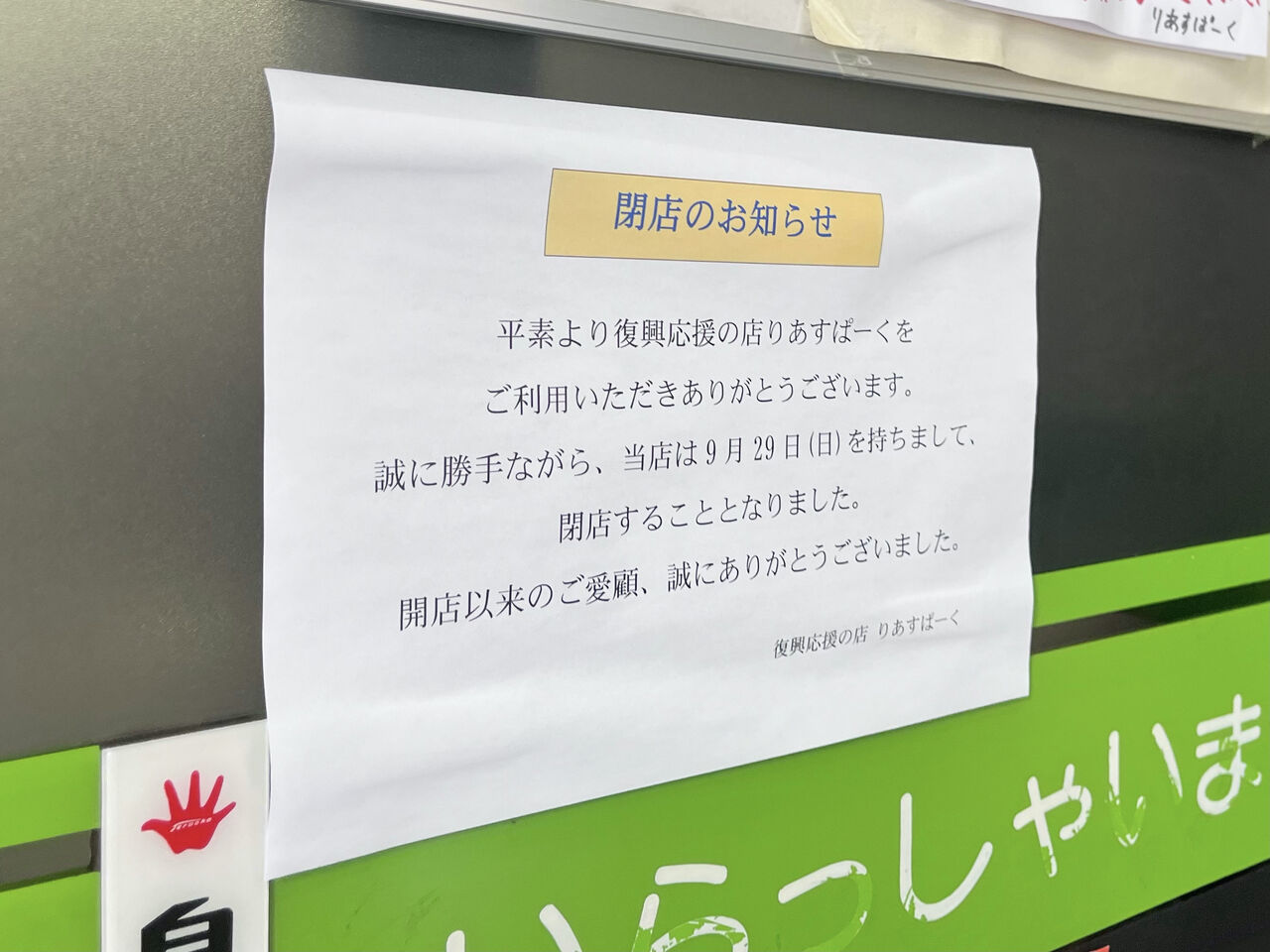 9月29日をもって閉店。